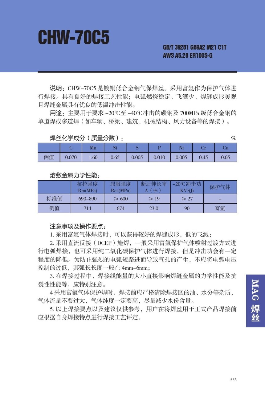 CHW-70C5低合金钢焊丝ER100S-G焊丝