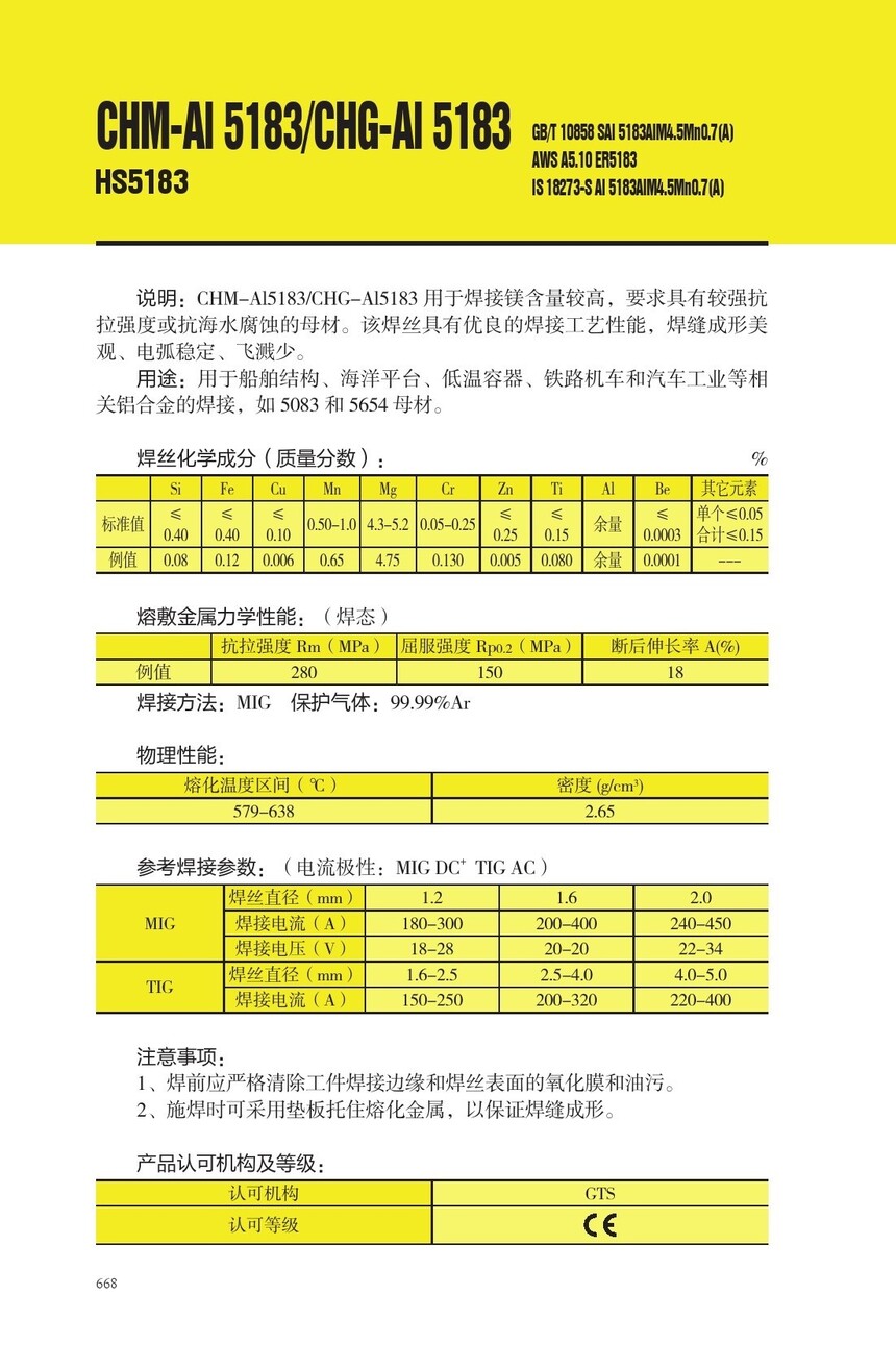 CHM-AI 5183铝焊丝CHG-AI 5183铝镁焊丝